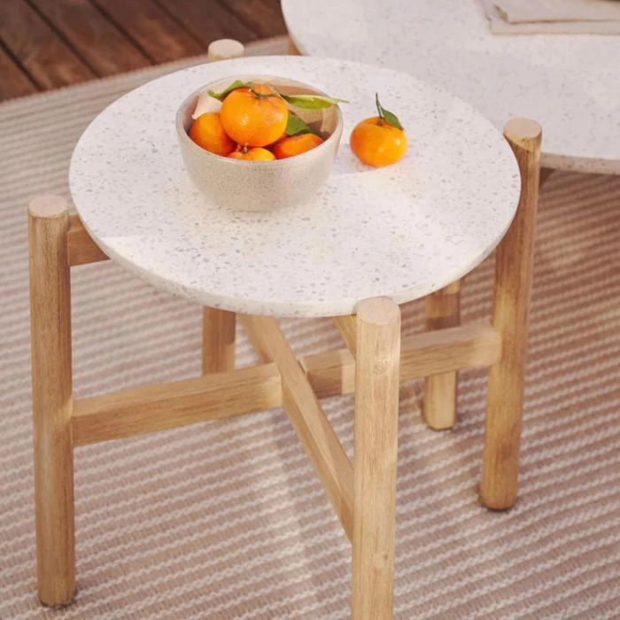 Dārza galds POLA darināts no materiāliem, kas radīti, lai tos kombinētu savā starpā. Teraco un eikalipts ir lielisks piemērs tam kā panākt ideālu kontrastu savā āra dzīvojamajā zonā, apvienojot koka dabisko skaistumu ar teraco izturību.
