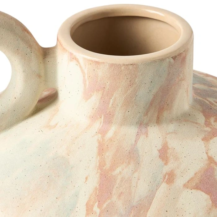 Vāze KIKO izceļas ar unikālu marmora glazūru, kas uz ģeometriskām formām rada plūstošu dizainu. Izgatavota no izturīgas akmens masas, šī sērija apvieno skaidras līnijas ar mūsdienīgu dinamiku – un padara katru priekšmetu par īstu skatienu piesaistošu elementu!