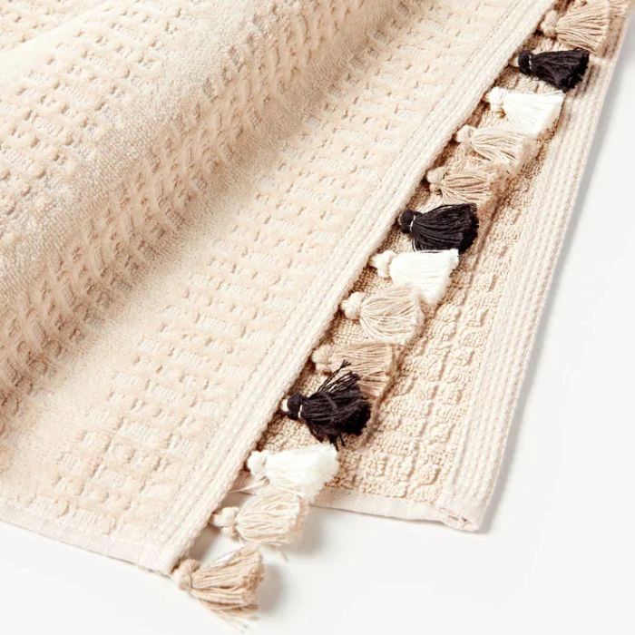 Vannas dvielis ar velūra priekšpusi un kokvilnas aizmuguri ar reljef. Dvielim ir ērta pakarināšanas cilpa. Ražots Portugālē.