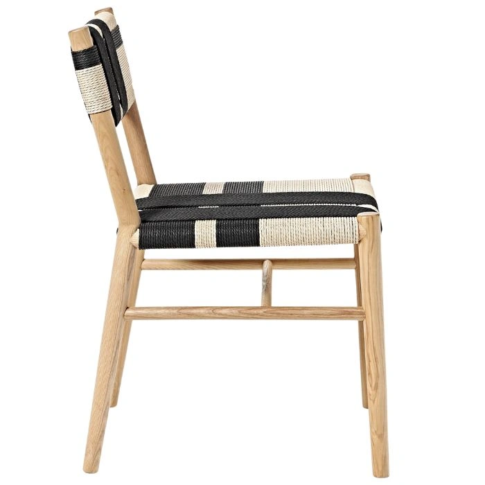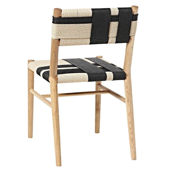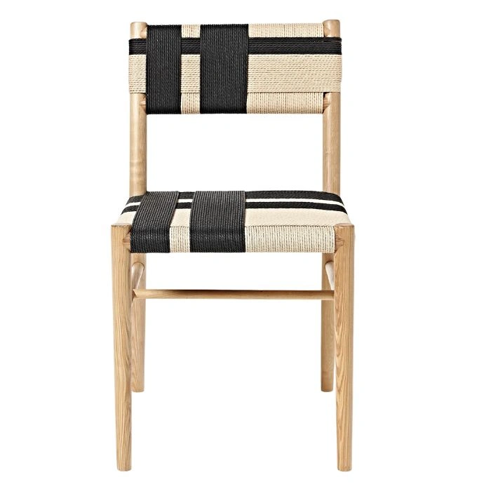 Koka krēsls MANI apvieno minimālistisku dizainu ar mākslinieciskām detaļām. Sēdeklis un atzveltne ir pītas ar abstraktiem rakstiem, piešķirot katram krēslam īpašu akcentu. Filigrānā struktūra un dekoratīvais pinums padara MANI par uzmanības centrālo objektu jebkurā ēdamistabā.