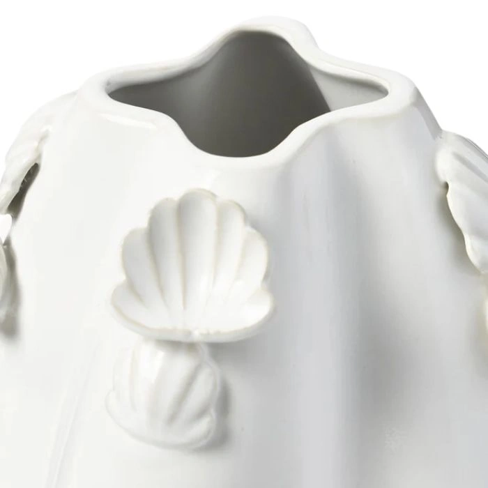 MAR vāze ir iedvesmota no jūras skaistuma un gliemežnīcu elegantajām formām. Vāze dekorēta ar smalkām, ar rokām piestiprinātām gliemežnīcām – katrs priekšmets ir īsts mākslas darbs. Neitrālā glazūra izceļ organiski veidotās līnijas un piešķir mājoklim vieglu noskaņu.